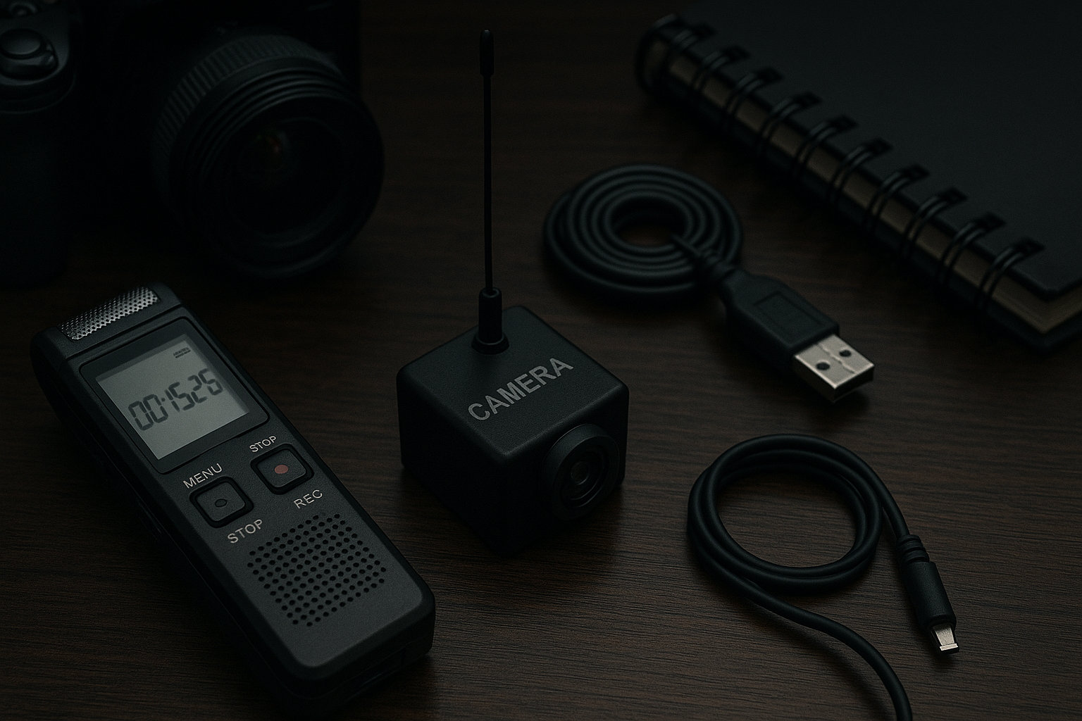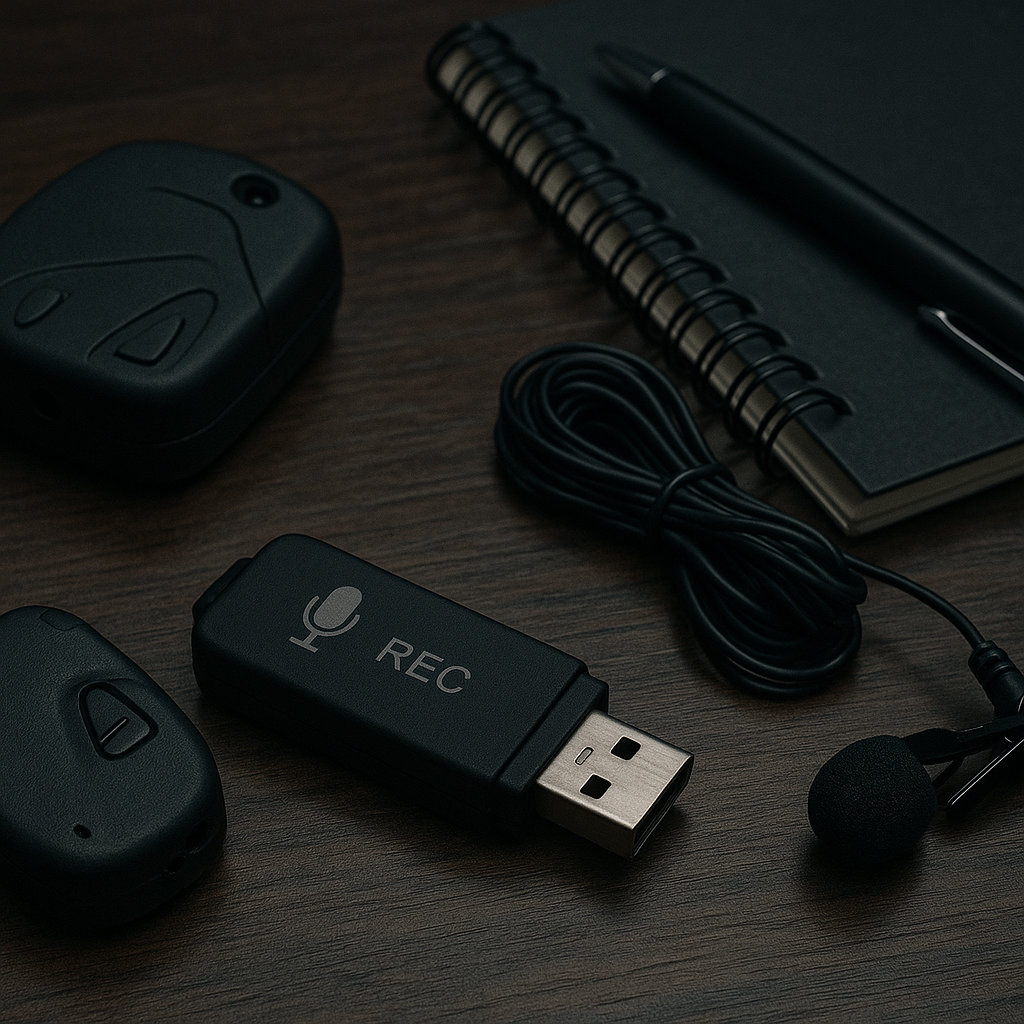 Не менш небезпечними є пристрої для прихованого запису звуку. Якщо у минулому це були диктофони розміром з коробку сигарет, то сьогодні техніка досягла неймовірної мініатюризації.